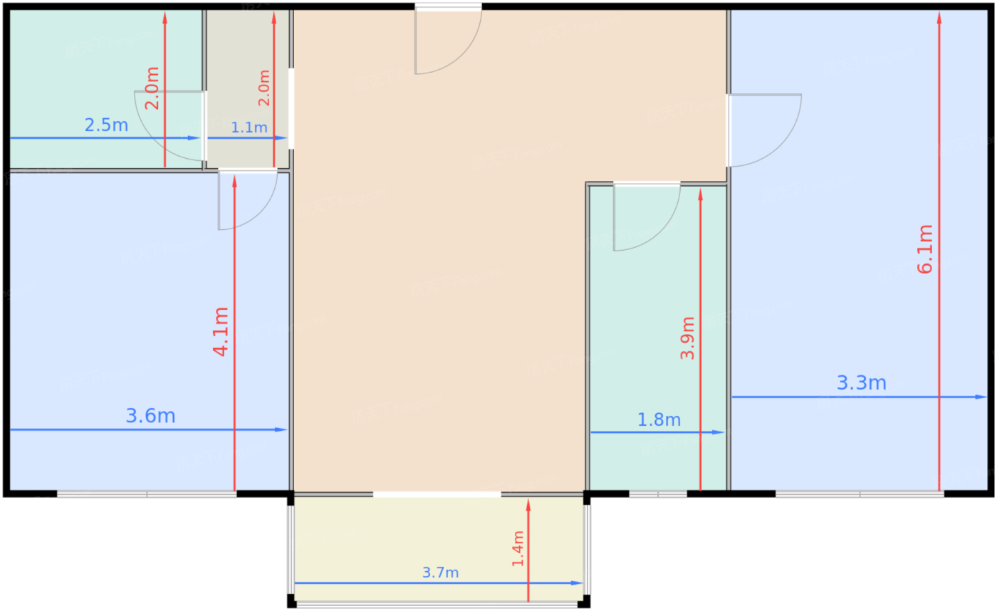 卧室A 18.5㎡ | 面宽3.3m | 进深6.1m
