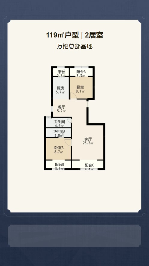 8#楼B2户型 | 建面:119.61㎡ | 朝向: