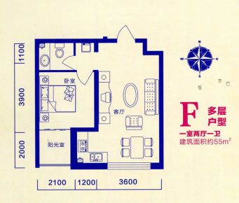 2室1厅1卫1厨