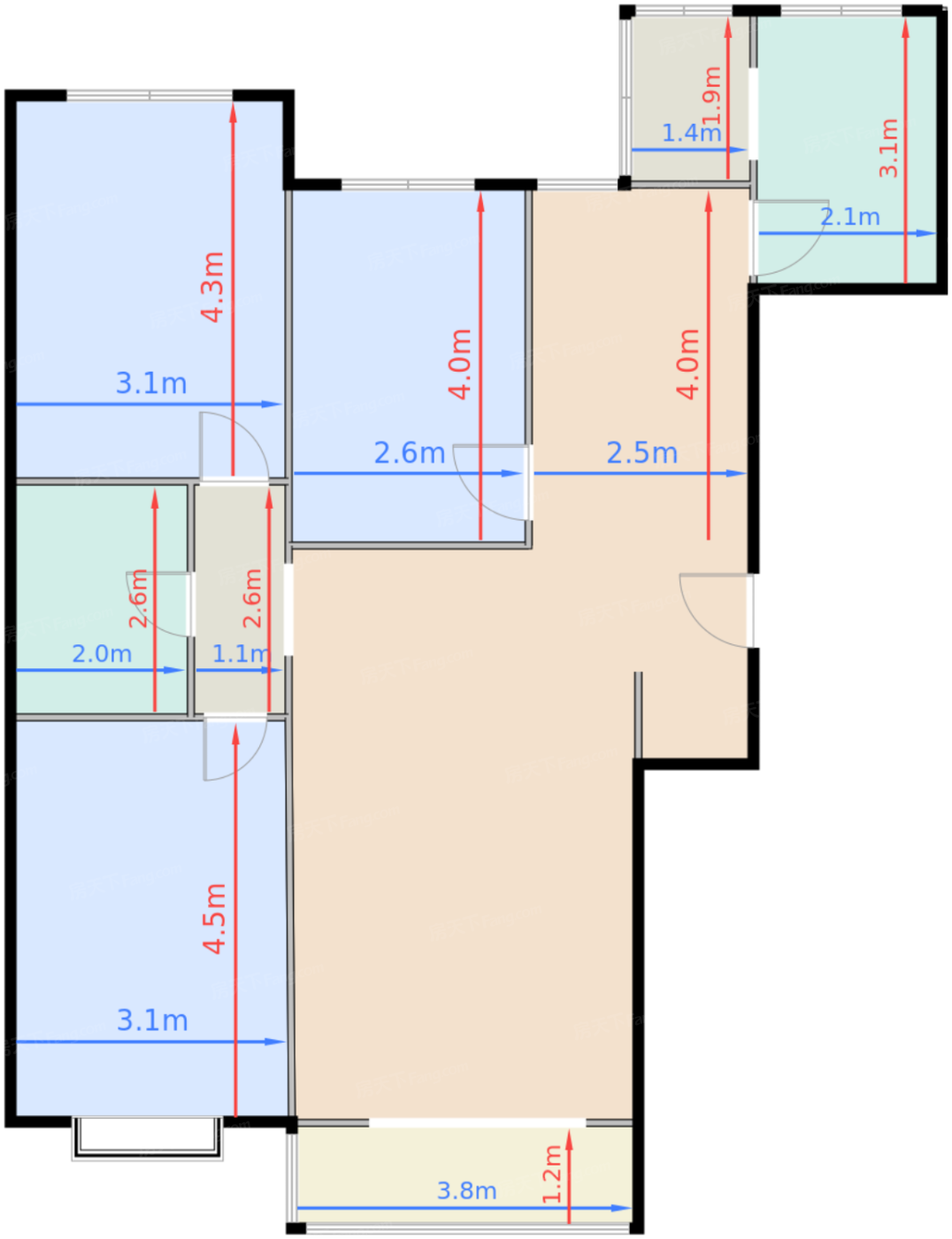 卧室B 12㎡ | 面宽3.1m | 进深4.3m