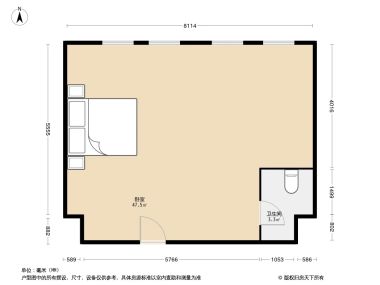 一间房屋内一面墙皮到另一面墙皮之间的实际宽度(竖向)。