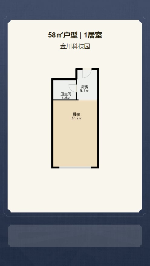 售完金川科技园1居室户型图 | 建面:58.01㎡ | 朝向:朝南