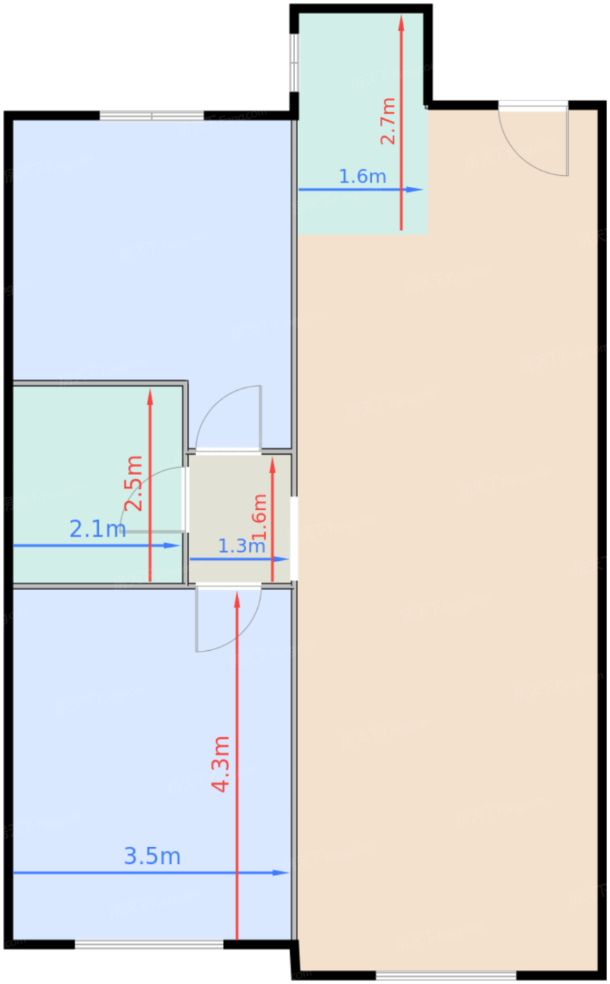 厨房 4.4㎡ | 面宽1.6m | 进深2.7m