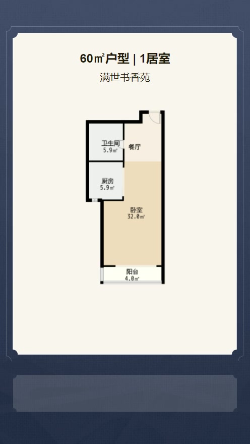 售完满世书香·苑1居室户型图 | 建面:60㎡ | 朝向:朝南