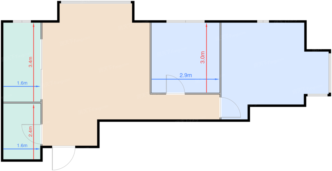卫生间 3.8㎡ | 面宽1.6m | 进深2.4m