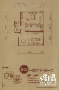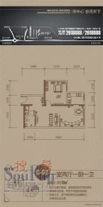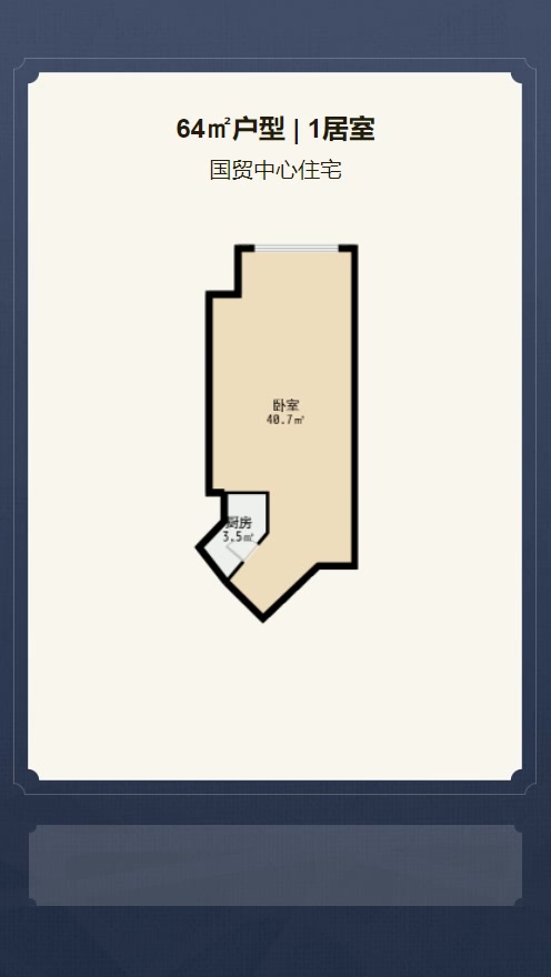 售完国贸中心1居室户型图 | 建面:64.24㎡ | 朝向:东南