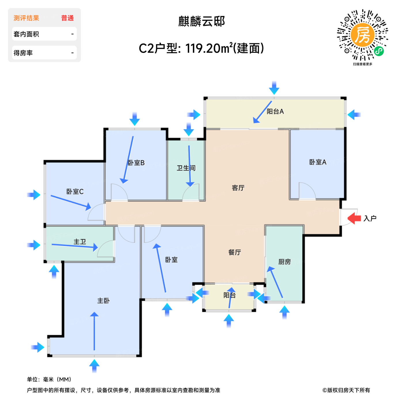 在售C2户型 | 建面:119.2㎡ | 朝向:北