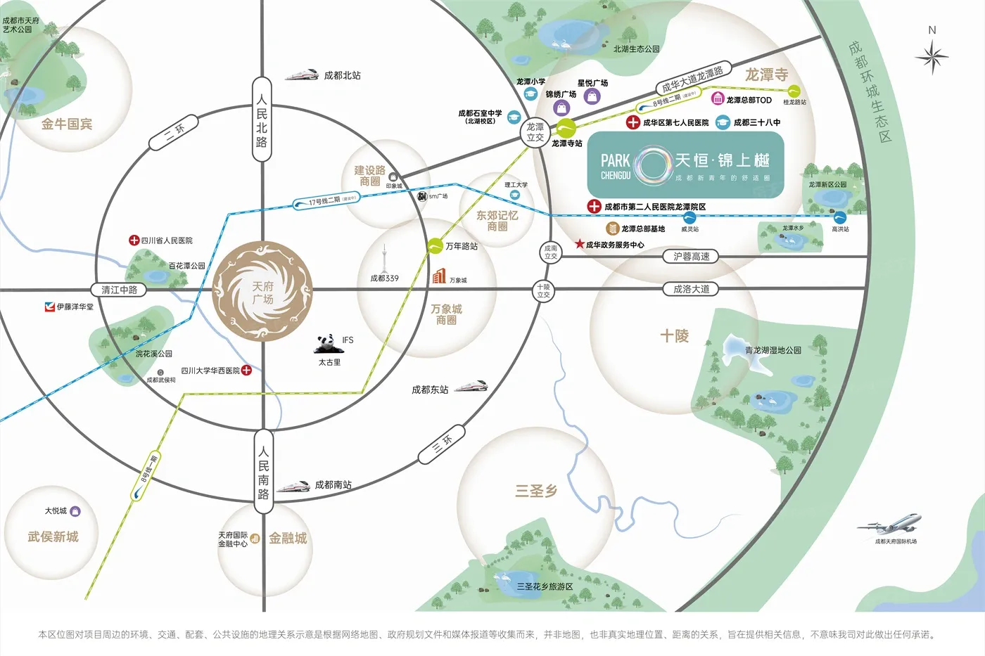 板块生态环境优越,内有17个公园,如北湖生态公园、成都熊猫慈善文化广场、龙潭水乡。非常方便日常休闲使用。