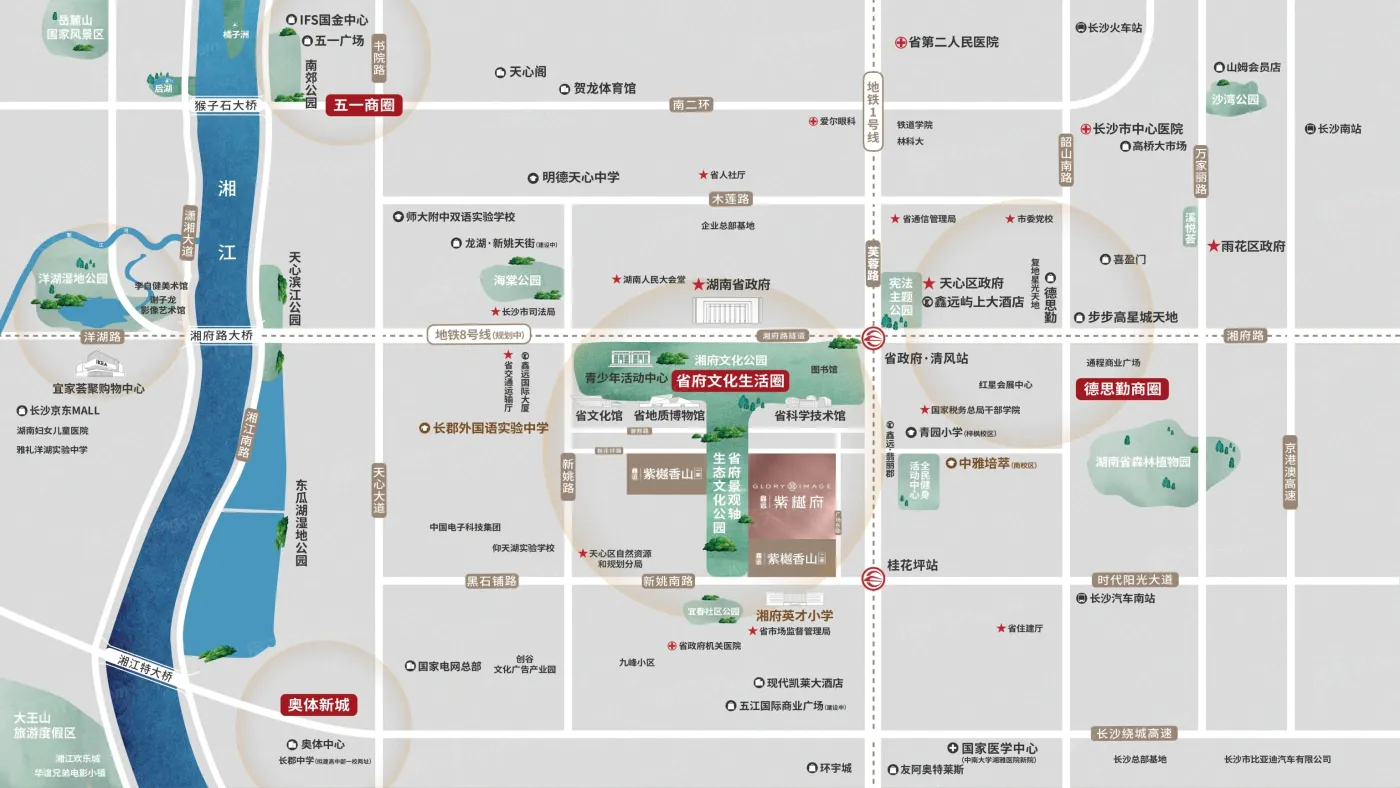 板块生态环境优越,内有14个公园,如紫薇广场、仙姑岭公园、先锋公园。非常方便日常休闲使用。