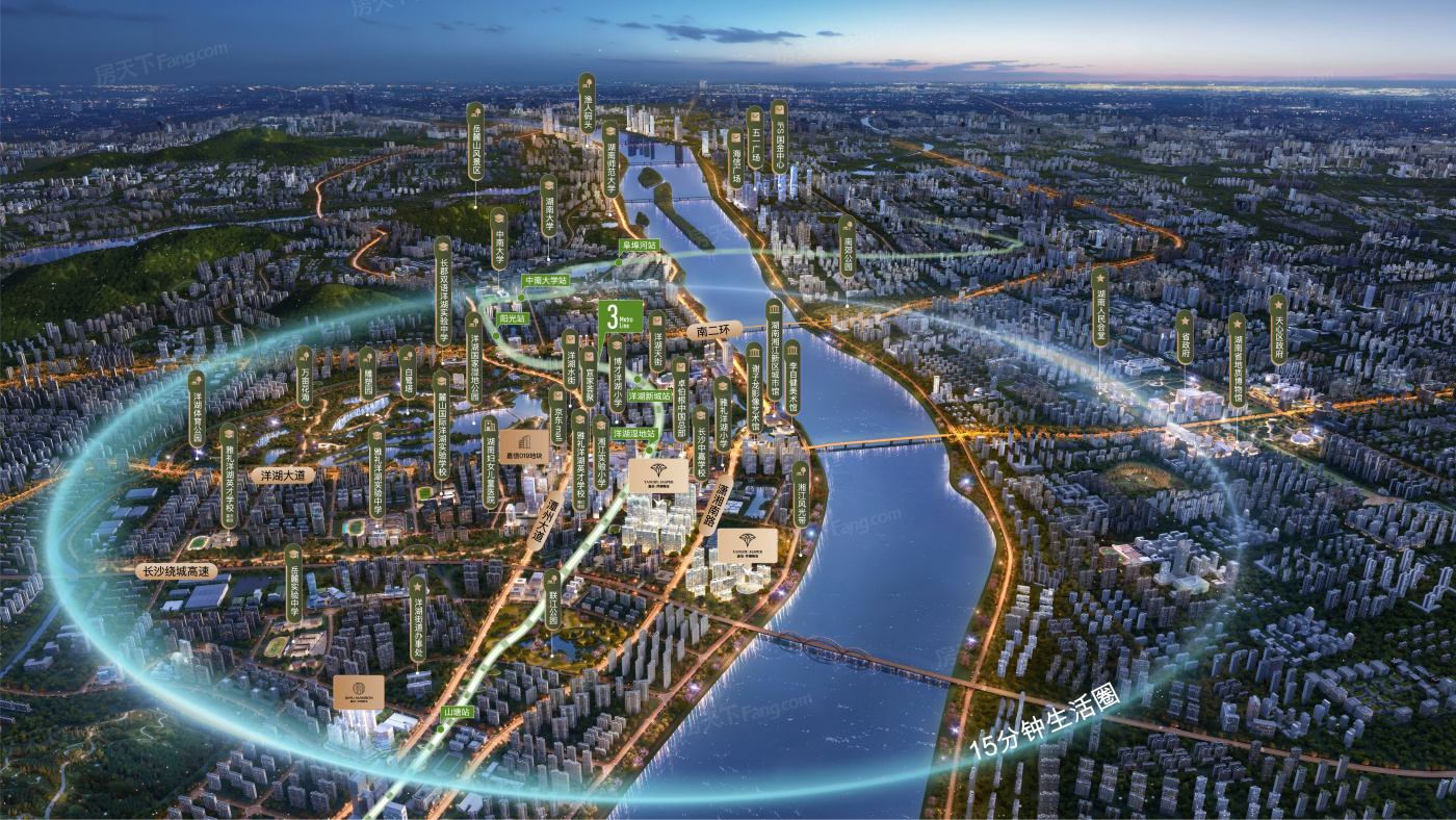 洋湖垸片区位于长沙岳麓,板块内有22个在售楼盘,其中住宅楼盘21个,别墅4个,板块参考均价在13554元/㎡。