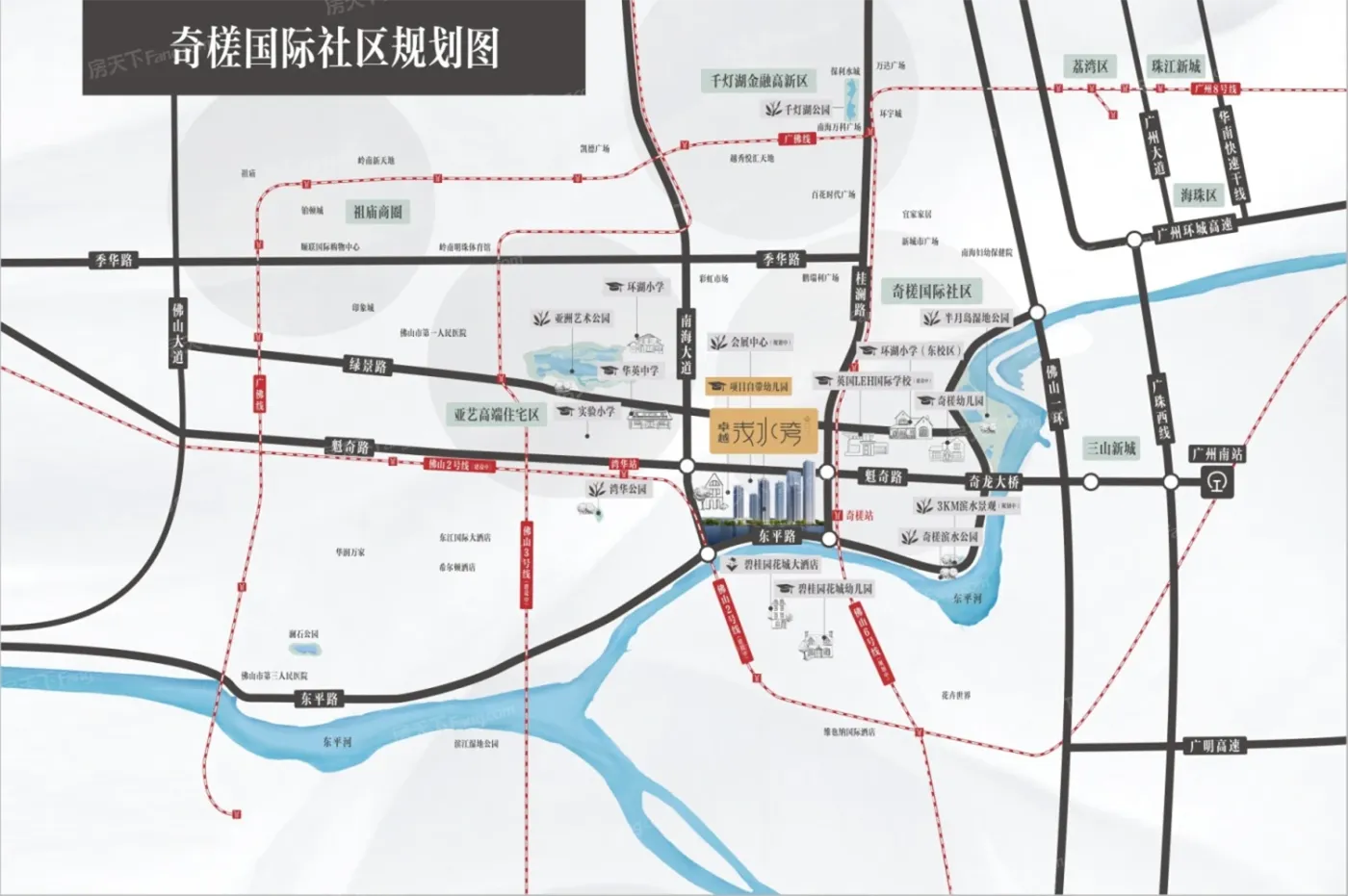 奇槎位于佛山禅城,板块内有8个在售楼盘,其中住宅楼盘8个,别墅1个,板块参考均价在24500元/㎡。