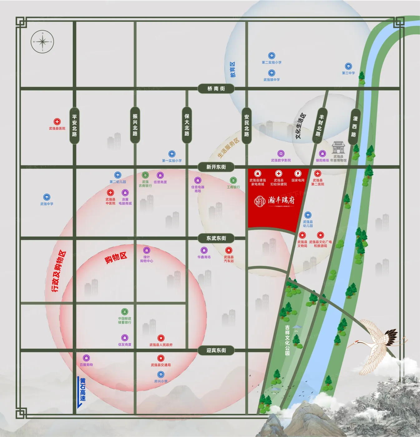 板块生态环境优越,内有6个公园,如火焰雕塑、武强吉祥文化公园、武强县音乐公园。非常方便日常休闲使用。