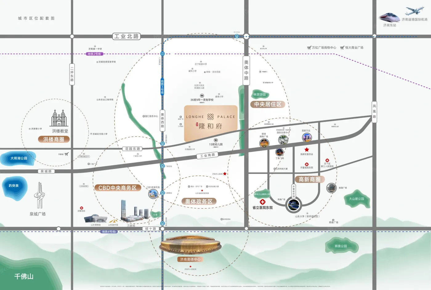 奥体中路商圈位于济南高新,板块内有4个在售楼盘,其中住宅楼盘4个,板块参考均价在22125元/㎡。