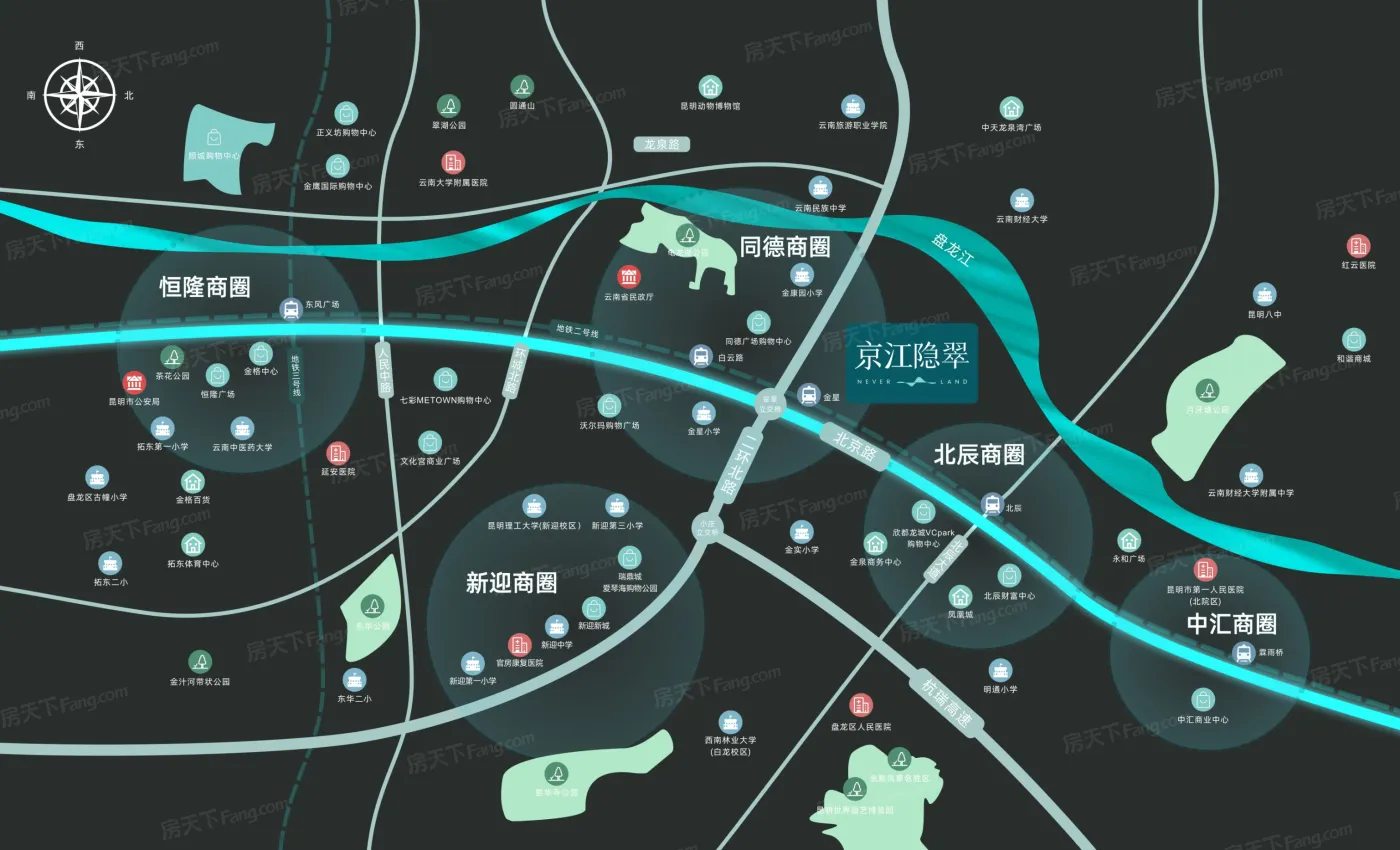 北辰位于昆明盘龙,板块内有3个在售楼盘,其中住宅楼盘3个,板块参考均价在22733元/㎡。