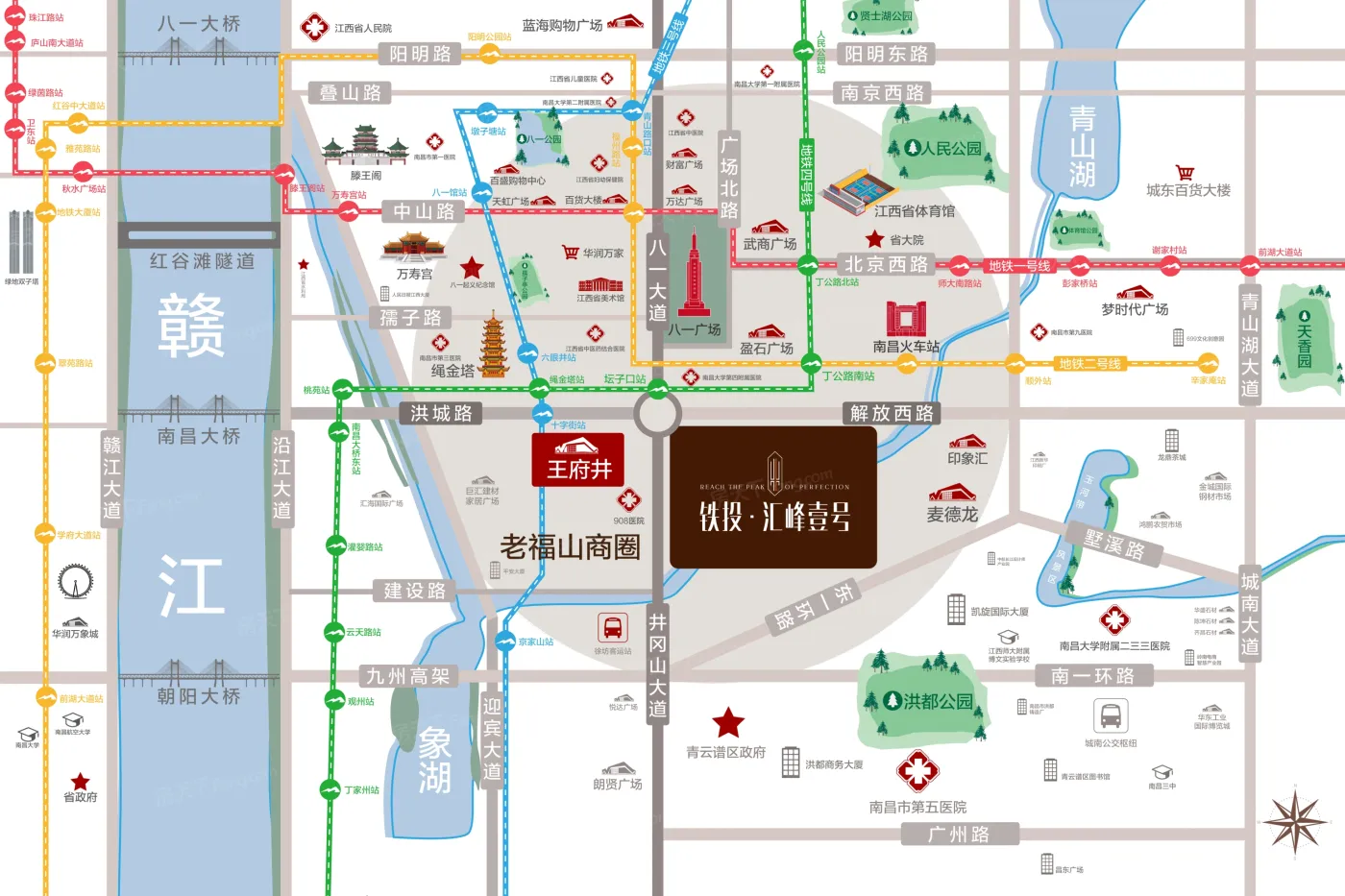 王府井位于南昌青云谱,板块内有1个在售楼盘,其中住宅楼盘1个,板块参考均价在11000元/㎡。