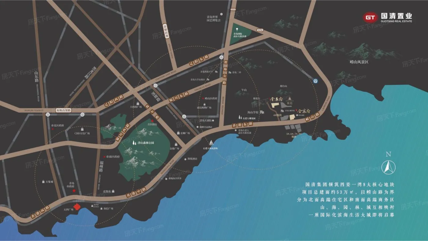 石老人位于青岛崂山,板块内有9个在售楼盘,其中住宅楼盘9个,别墅2个,板块参考均价在45250元/㎡。