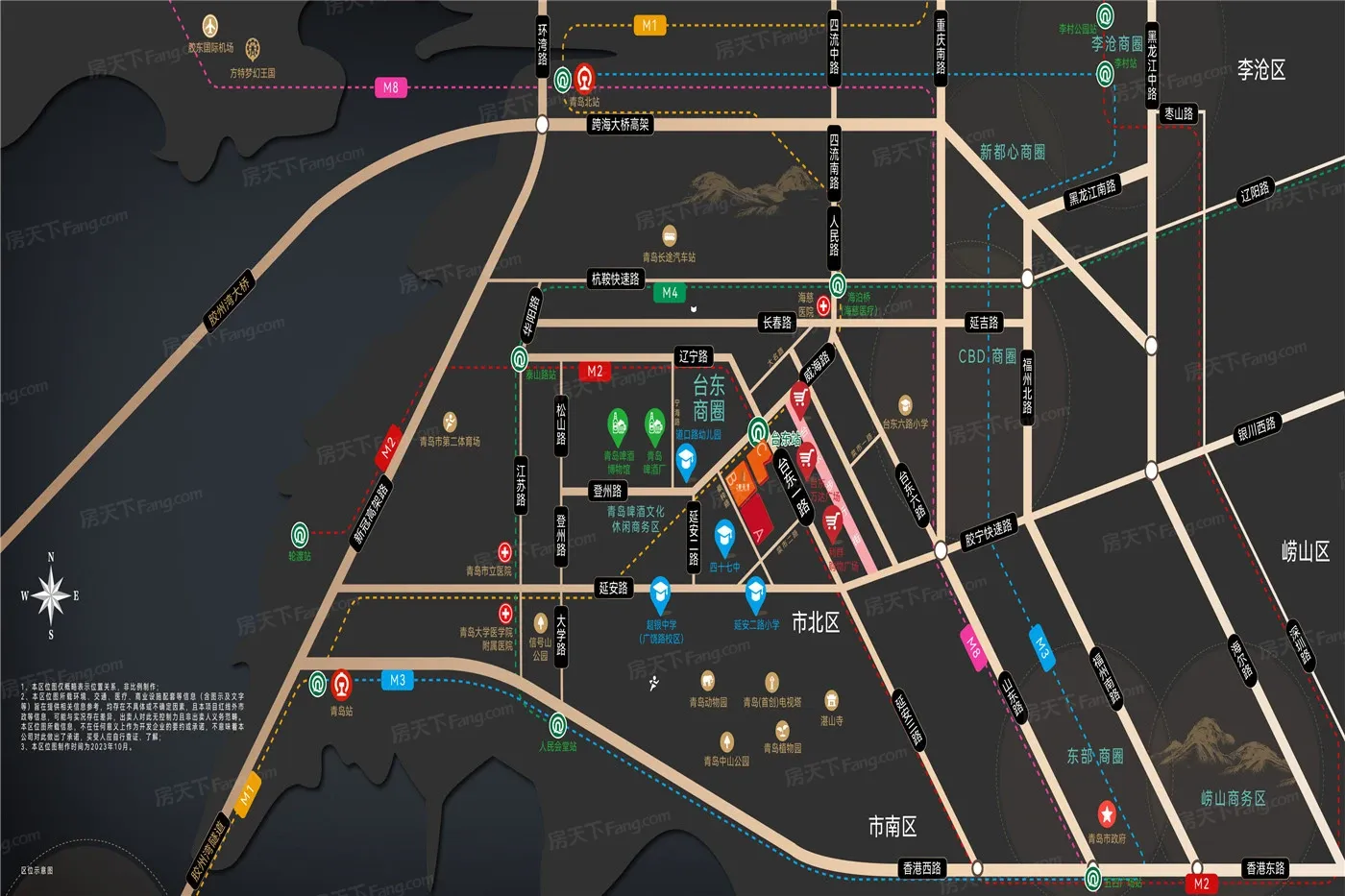 台东板块位于青岛市北,板块内有5个在售楼盘,其中住宅楼盘5个,板块参考均价在22500元/㎡。