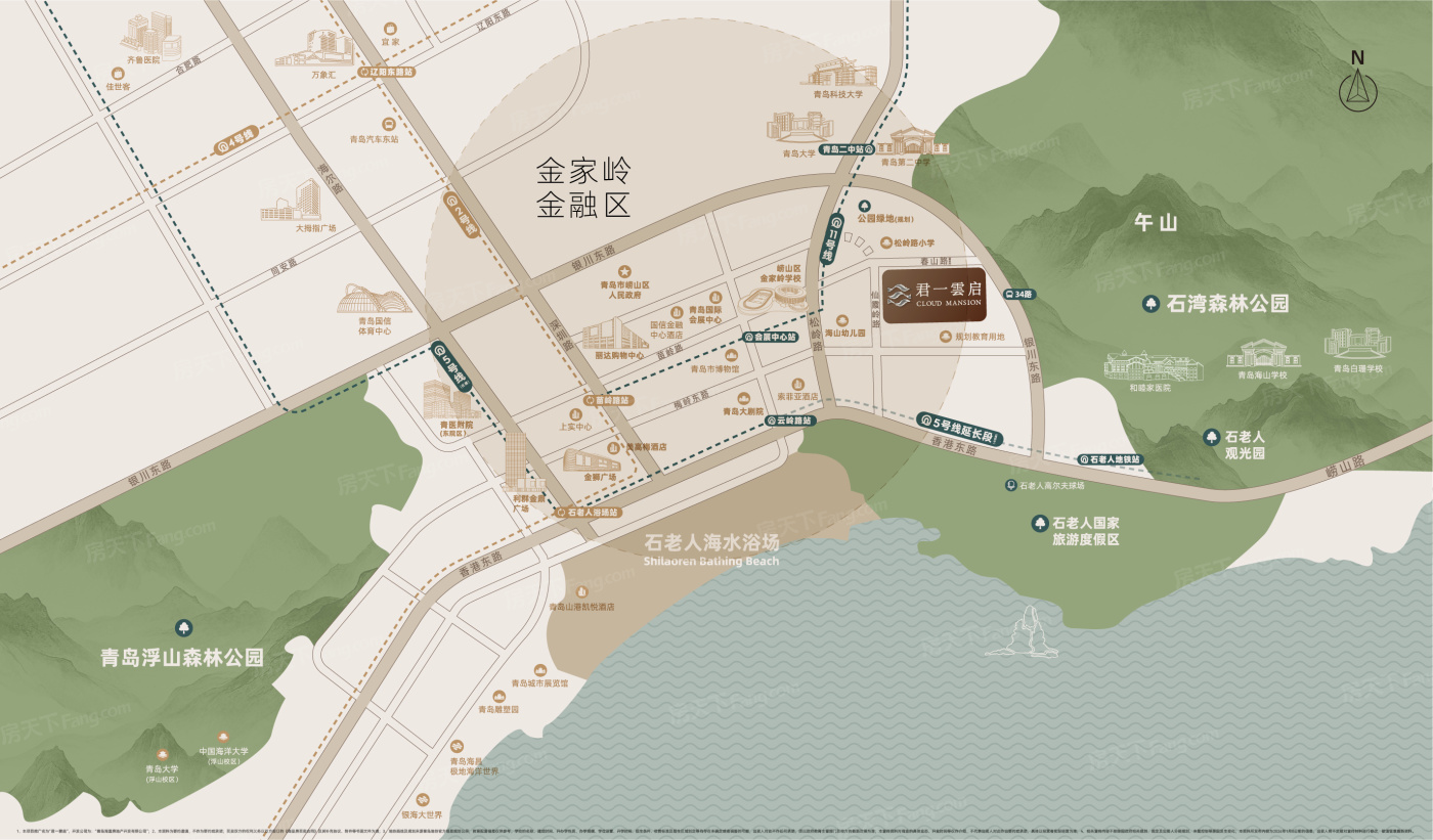 浮山前位于青岛崂山,板块内有4个在售楼盘,其中住宅楼盘3个,别墅1个,板块参考均价在42500元/㎡。