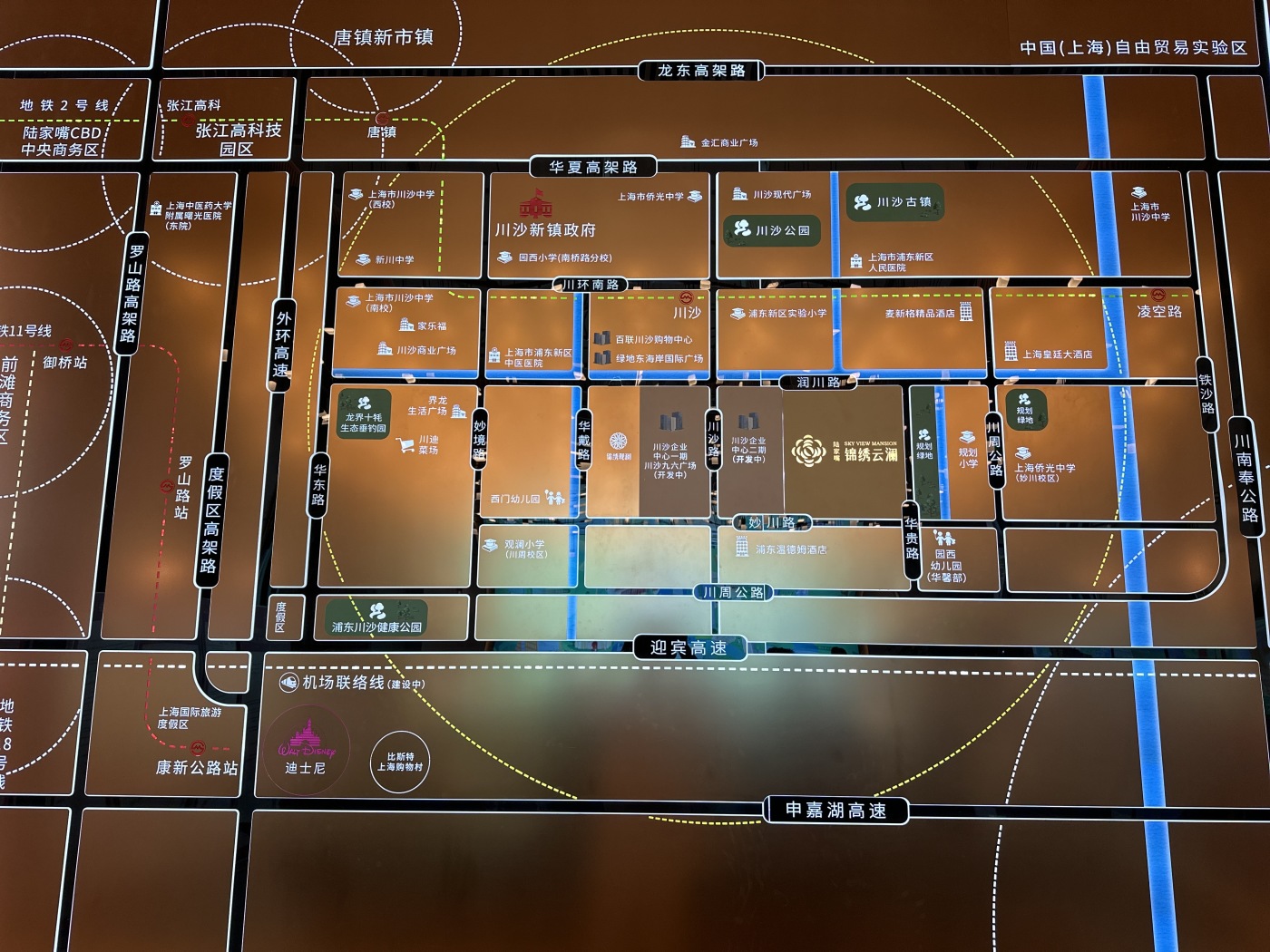 板块内有5个地铁站:如川沙地铁、凌空路地铁、华夏东路地铁等;有325个公交站:如川展路陈行牧场路、高桥路高桥支路、华萃路川滨路等。
