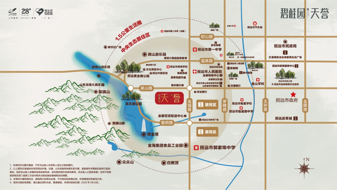 板块生态环境优越,内有13个公园,如金都魁星文化休闲区、招远市体育公园、中国金都黄金珠宝首饰城。非常方便日常休闲使用。