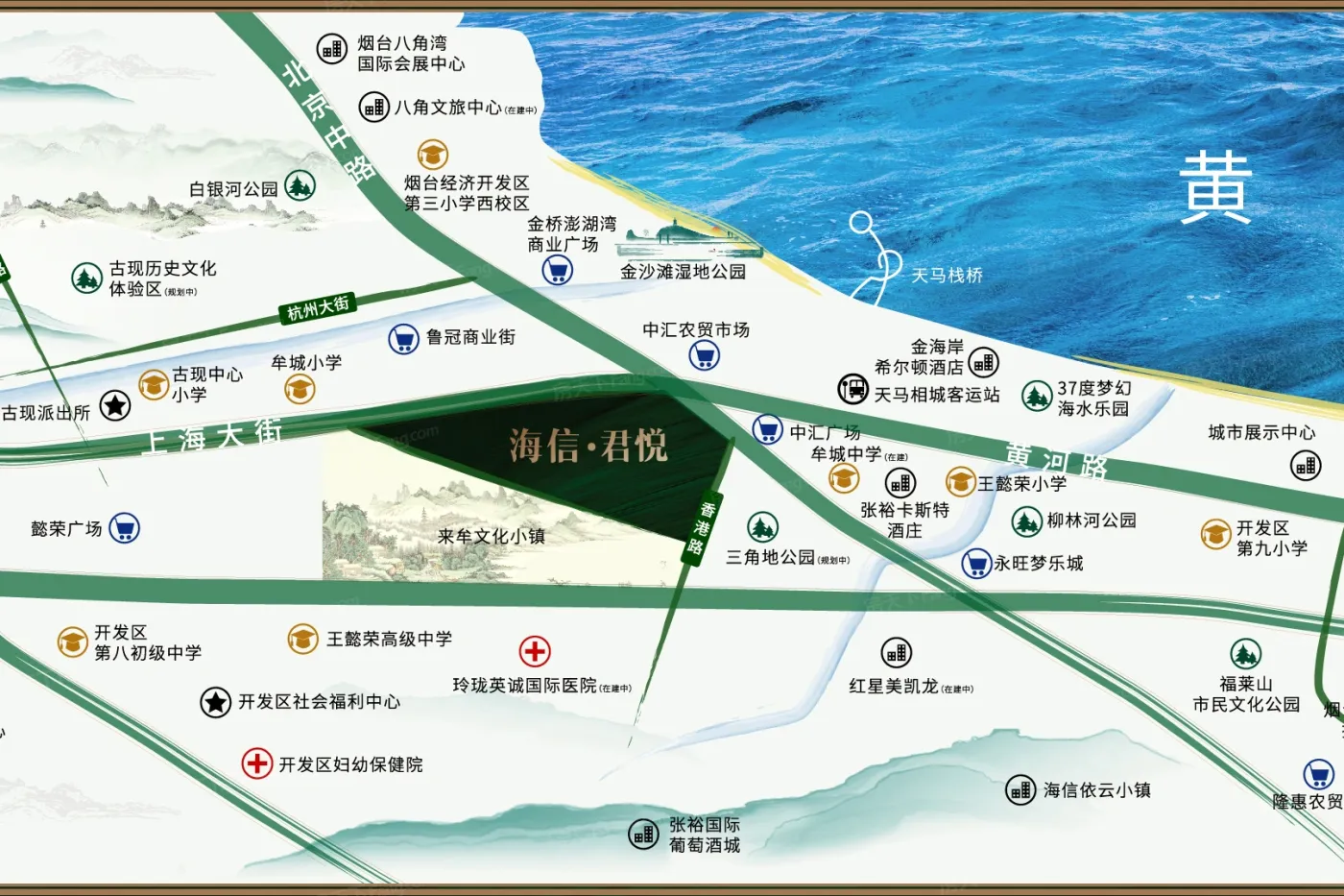 板块内有2个商场,包括中汇广场、永旺梦乐城(烟台金沙滩店)等购物中心,商业配套醇熟。