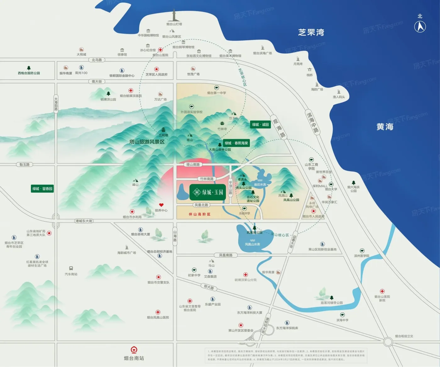 莱山大南山板块位于烟台莱山,板块内有4个在售楼盘,其中住宅楼盘4个,别墅2个,板块参考均价在18500元/㎡。