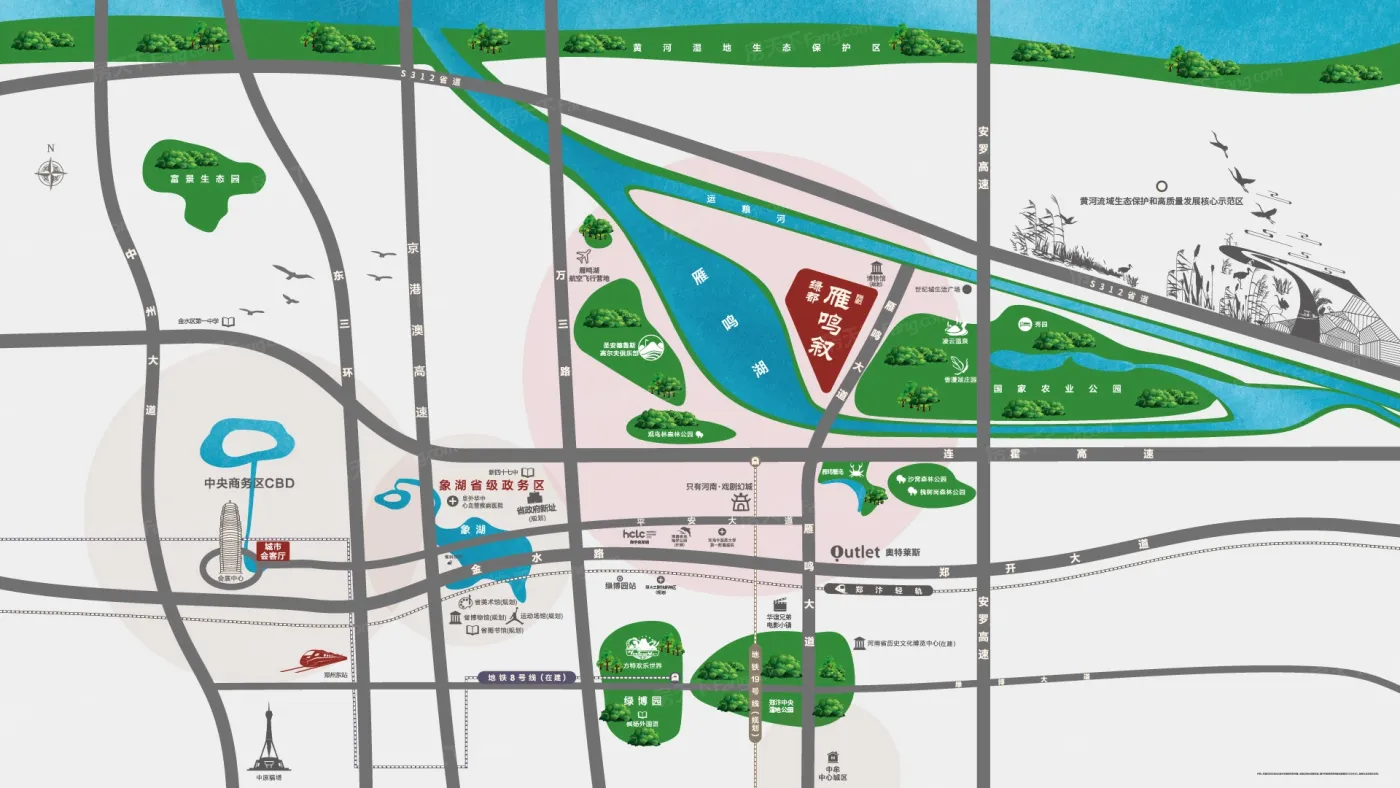 雁鸣湖片区位于郑州中牟,板块内有9个在售楼盘,其中住宅楼盘8个,别墅4个,板块参考均价在11200元/㎡。