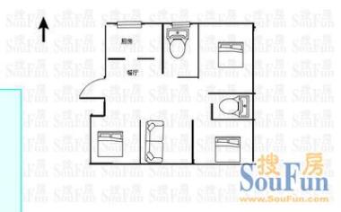 卫生间 6.8㎡ | 面宽3.3m | 进深2.4m