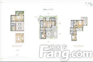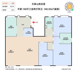 主推户型是 135.00㎡(3室1厅1卫),144.00㎡(5室1厅1卫)产权是70年的小区