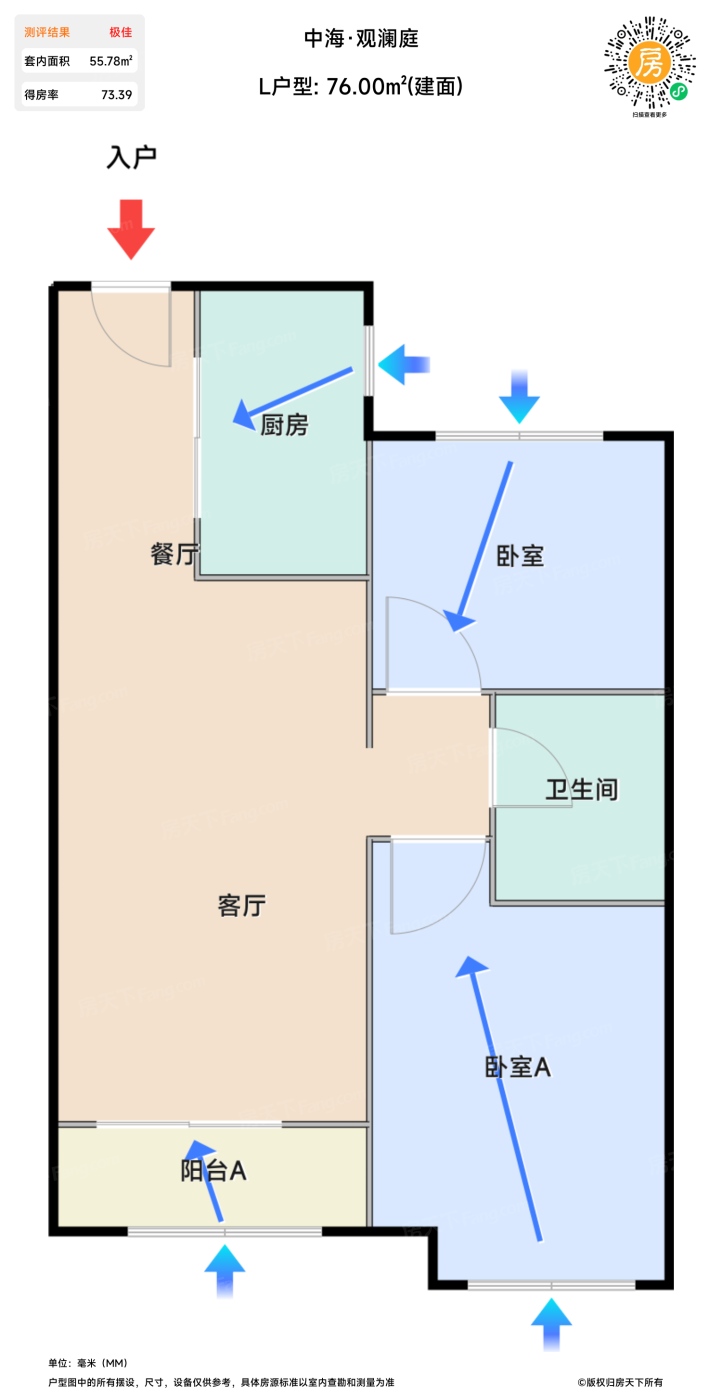 售完L户型 | 建面:76㎡ | 朝向: