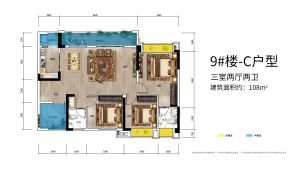 3室2厅2卫 108.0㎡
