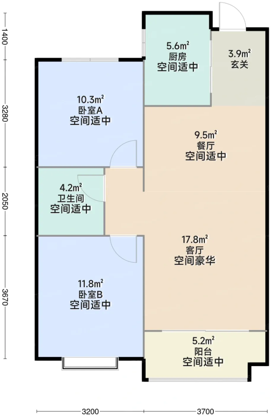 9.37户型测评基础评级:极佳,空间评级:良好,采光评级:优秀