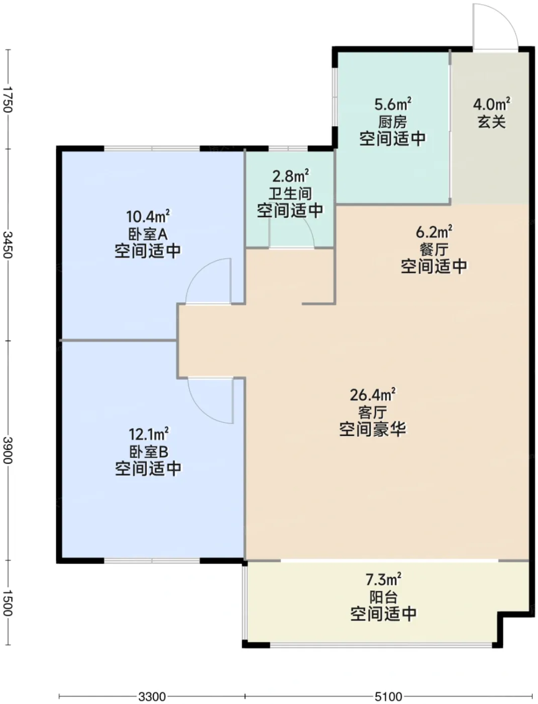 8.53户型测评基础评级:良好,空间评级:良好,采光评级:良好