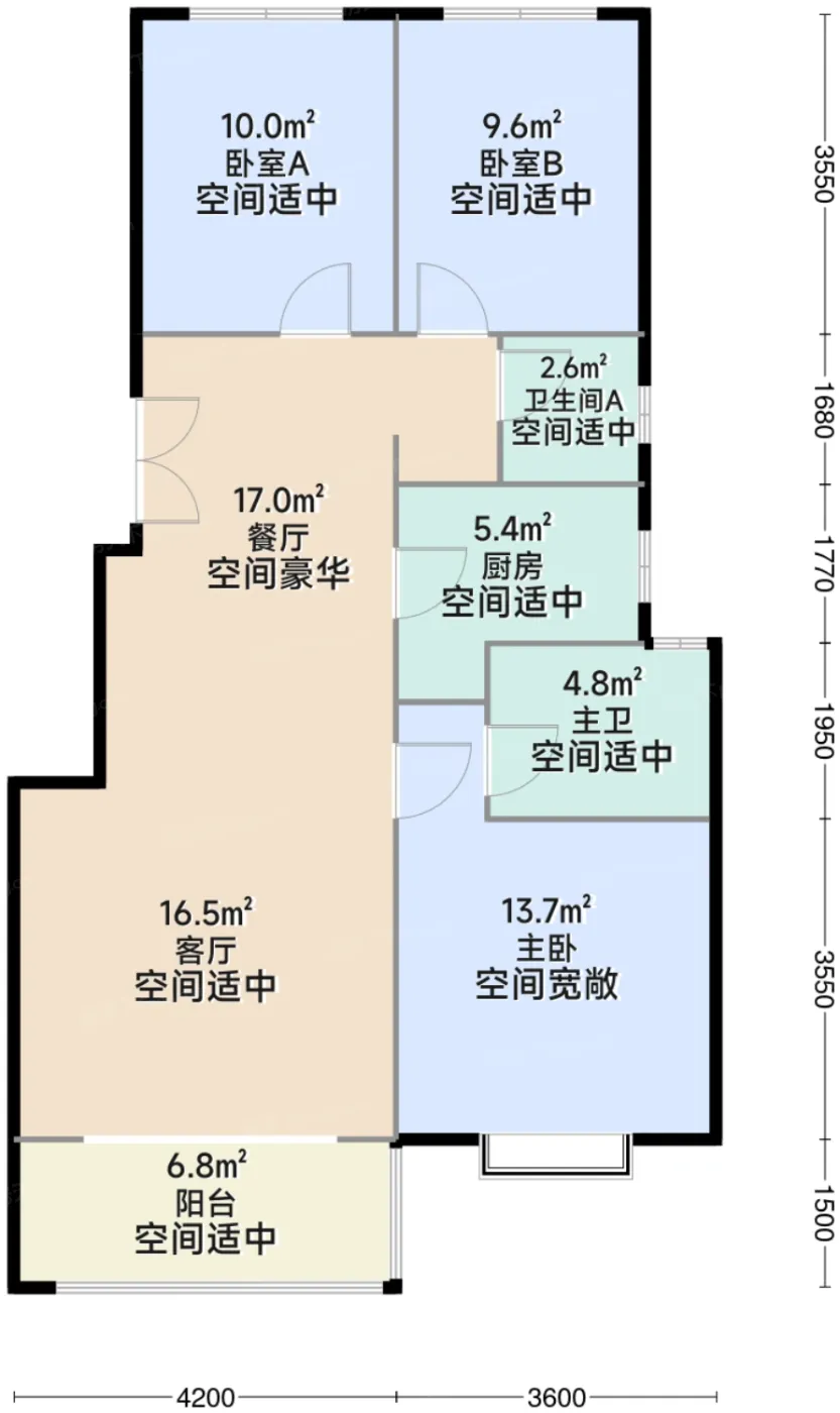 9.5户型测评基础评级:极佳,空间评级:良好,采光评级:极佳