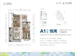 A1户型3室128.57㎡