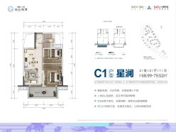 C1户型星澜2室68.99㎡