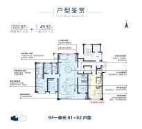 9#一单元01+02户型4室222.07㎡