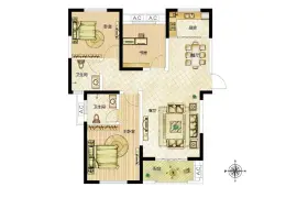 2室2厅1卫 91.0㎡