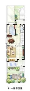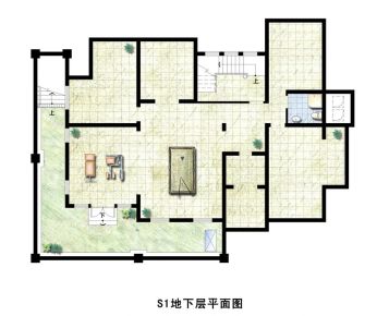 售完院墅D-2户型中间套地下层平面图 | 建面:190㎡ | 朝向: