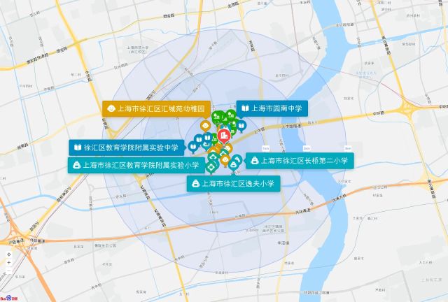 直线3km范围内有60个幼儿园。直线3km范围内有26个小学,如上海市徐汇区长桥第二小学、上海市徐汇区逸夫小学、上海市徐汇区教育学院附属实验小学、上海市徐汇区向阳育才小学、上海中医药大学附属蔷薇小学晶城校区等。直线3km范围内有26个中学,如上海市上海中学、上海市徐汇中学(南校区)、上海民办位育中学、上海市世外中学、上海市园南中学等。