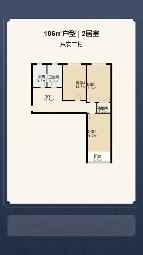 售完东安二村2居室户型图 | 建面:106.67㎡ | 朝向:南北通透