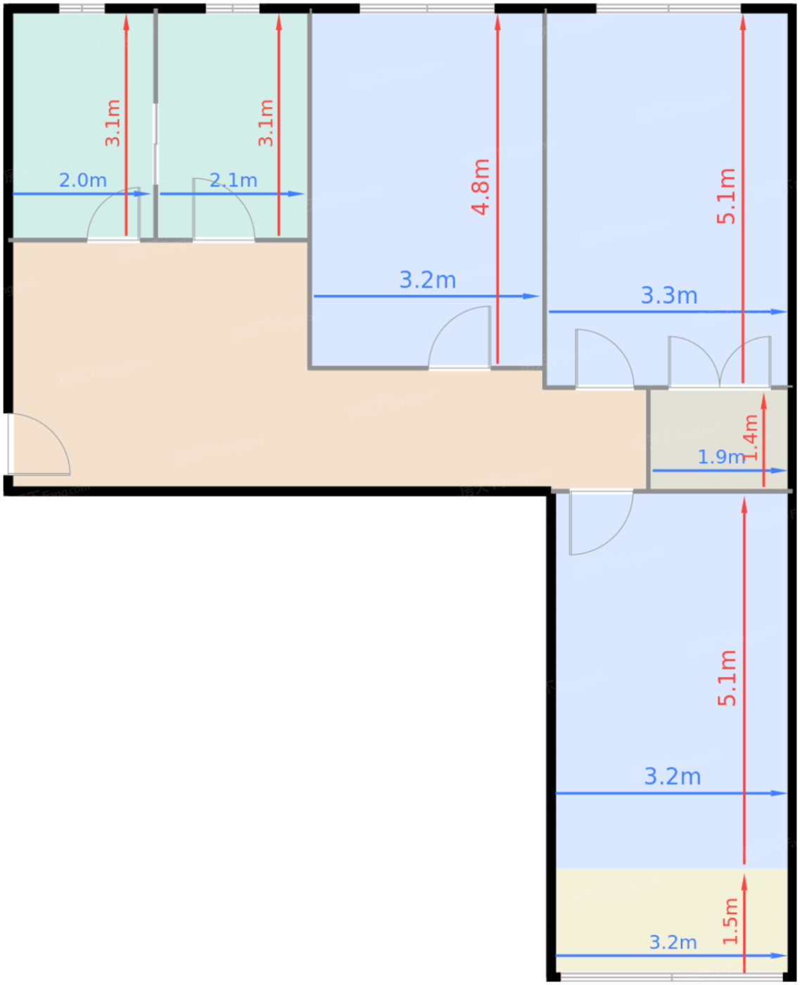 | 卧室B | 16.3 | 3.3 | 5.1 | 极佳 |