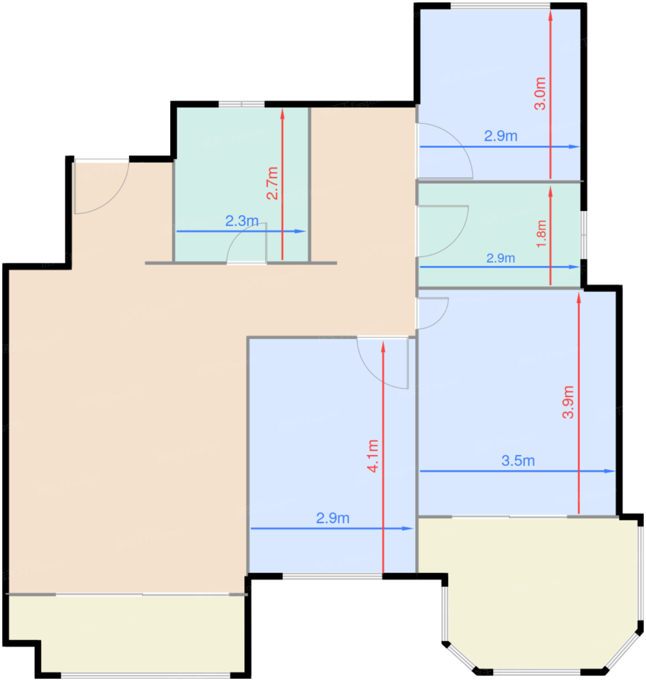 | 卧室B | 11.8 | 2.9 | 4.1 | 良好 |