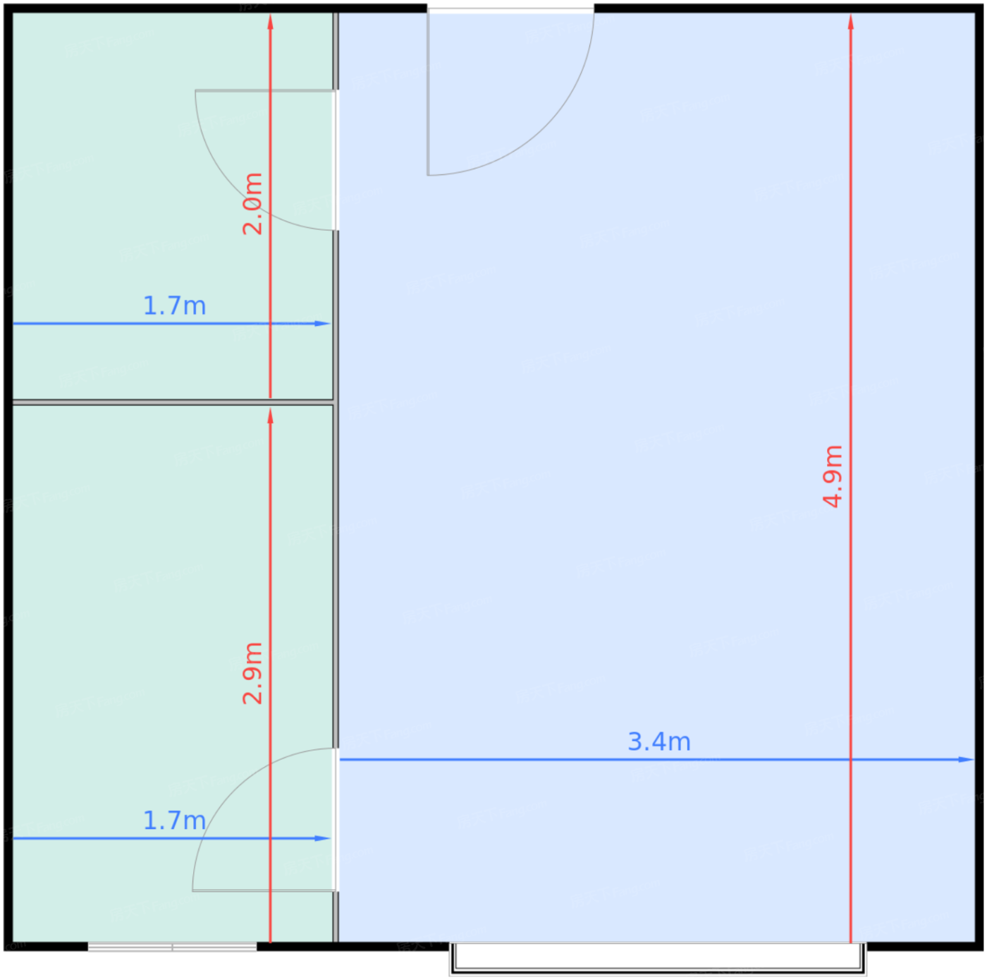 卧室 16.5㎡ | 面宽3.4m | 进深4.9m