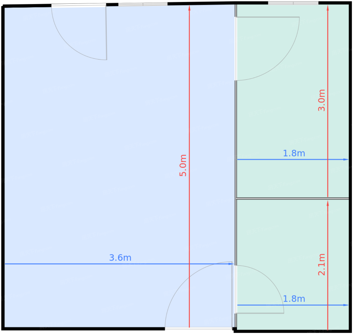 卧室 17.3㎡ | 面宽3.6m | 进深5.1m