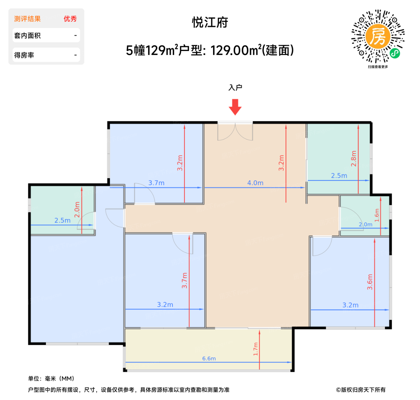 | 主卧 | 17.9 | 3.7 | 6.2 | 极佳 |
