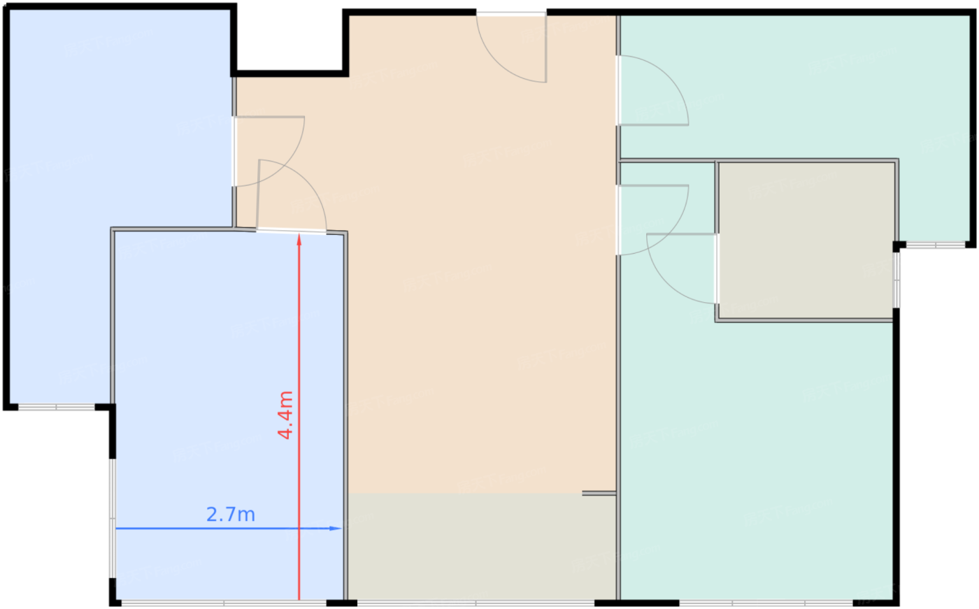 卧室B 12㎡ | 面宽2.7m | 进深4.4m
