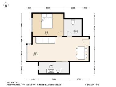 室内空间对应面积。