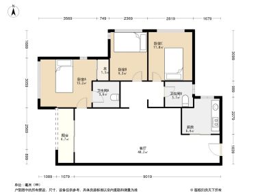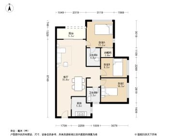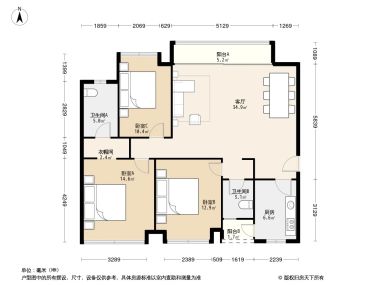 3室1厅2卫1厨