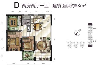 - 空间适中尽管卧室D面积不大,但设计却十分巧妙,每一寸空间都被精心打造,为您打造出一个既温馨又舒适的休憩空间。